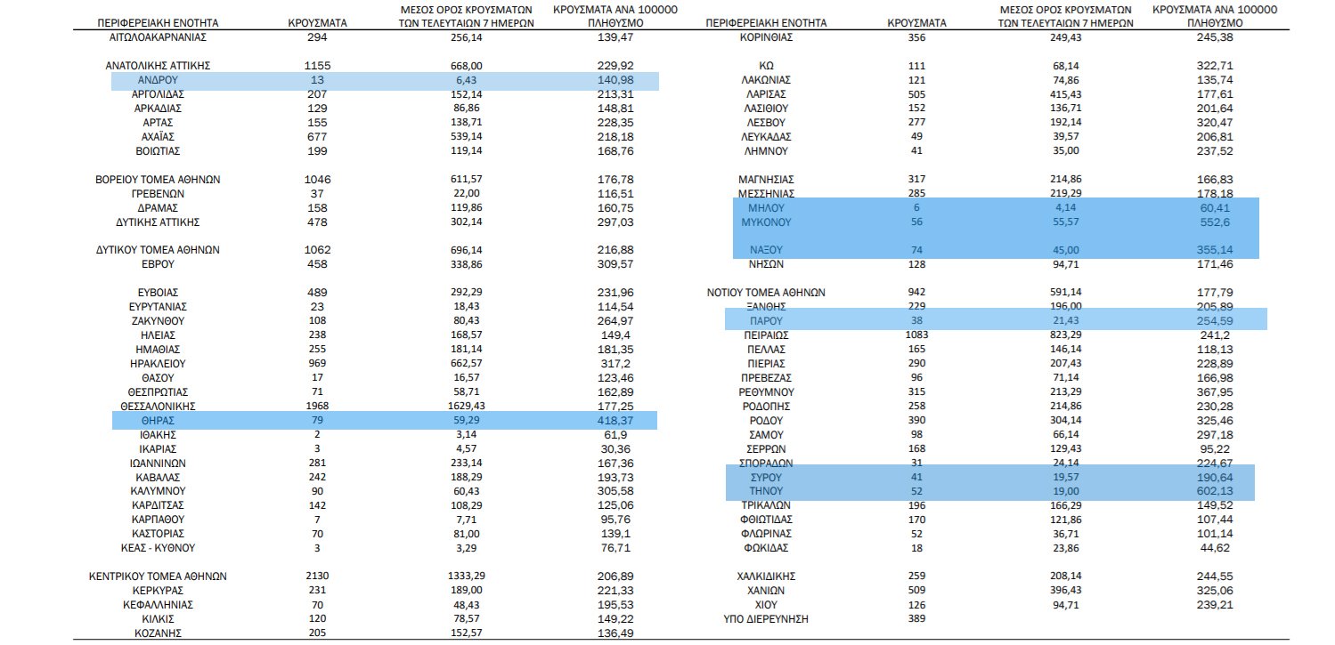 1 Με βάση τα επιβεβαιωμένα κρούσματα των τελευταίων 7 ημερών, 425