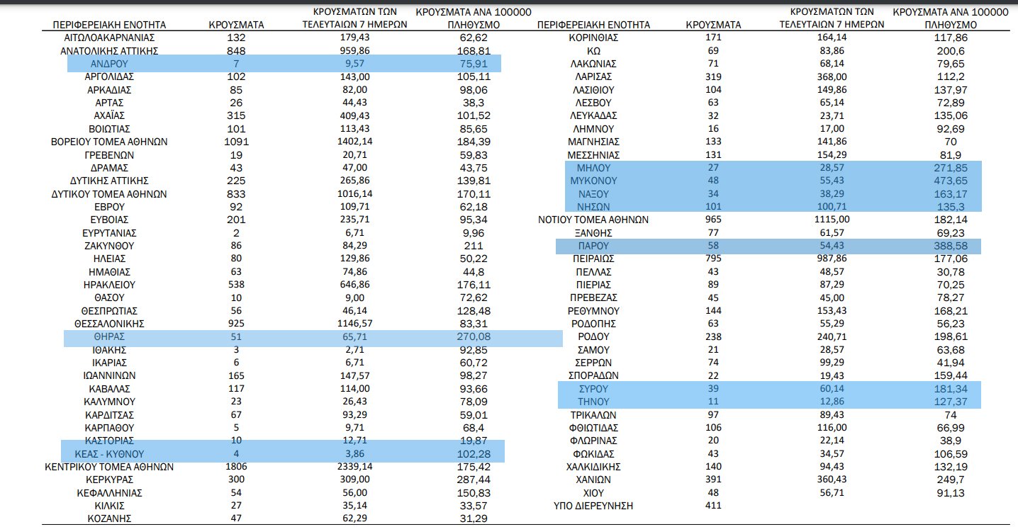 ΚΟΡΩΝΟΪΟΣ: ΣΤΑΘΕΡΑ ΔΙΨΉΦΙΕΣ ΟΙ ΔΙΑΓΝΩΣΕΙΣ ΣΤΙΣ ΚΥΚΛΑΔΕΣ