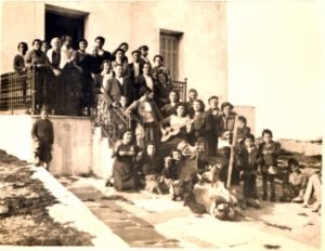 Το δεύτερο άτομο που κρατούσε τον πρώτο από τη μέση, σκυφτοί και οι δύο, βάζανε στην πλάτη τους δύο ανάποδες σκάφες, καλυμμένοι με προβιές, κουρελούδες και λιόπανα, έκαναν την ‘’ καμήλα ’’, ο Πέτρος τους είχε δεμένους με μια αλυσίδα και τους οδηγούσε, έτσι αποχαιρετούσαν τον καρνάβαλο, γιατί πενία τέχνας κατεργάζεται, όταν η ευρηματικότητα και οι έξυπνες λύσεις είναι το δημιουργικό αντίβαρο στις δυσκολίες και στην ανεπάρκεια των μέσων, για να διασκεδάσουν. Ο παππούς και η γιαγιά της γυναίκας μου Γιάννης και Ειρήνη, ο πεθερός μου Αντώνης και η πεθερά μου Ανδρονίκη, η Μαργαρίτα, ο Οθωναίος και η γυναίκα του η νονά Οθωναίισσα, ο Παναγιώτης, ο Αντώνης, η Φωτεινή, η Μαργαρώ, η Κατίγκω, η Άννα, όρθιοι από δεξιά Γιάννης, Γιώργος και Θόδωρος με την μητέρα τους Κρυστάλλη και πολλοί άλλοι Σικινιώτες που δεν γνωρίζω .