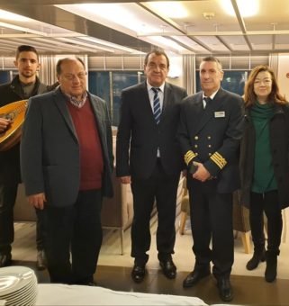 Στις 12 και 1′ καλωσορίσαμε το “blue star Δήλος” με τον προεδρο του Λιμενικού Ταμείου κ. Άγγελο Ρούσσο.