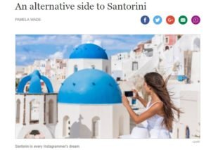 Και η Wade, συνεχίζει: «Αναπόφευκτα, όλοι συρρέουν εδώ, περίπου την ίδια εποχή. Συνωστίζονται στους στενούς δρόμους, κατακλύζουν τα μαγαζιά και τα εστιατόρια, όλα ακολουθώντας την ίδια ωραία διαδρομή και όλοι κινούνται με μια σκέψη στο μυαλό τους έρχονται ηλιοβασίλεμα: να φτάσουν στην Οία, να σταθούν στην κορυφή του βράχου και να τραβήξουν την απόλυτη «Instagram φωτογραφία», πίσω από λευκοβαμμένα σπίτια και εκκλησίες με μπλε τρούλους, και έναν ανεμόμυλο ή δύο για πιο καλλιτεχνικό αποτέλεσμα».