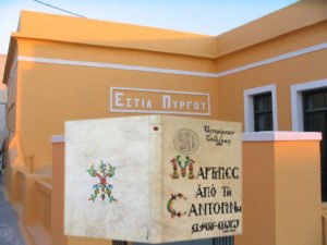 “Η Εστία Πύργου σας προσκαλεί στα εγκαίνια της έκθεσης Βιβλιοδεσίας Τέχνης «ΣΑΝΤΟΡΙΝΗ», το Σάββατο, 6 Μαΐου 2017, στις 20.00, στον εκθεσιακό χώρο της κεντρικής πλατείας Πύργου. Η έκθεση θα παρουσιάσει τις μοναδικές δημιουργίες με θέμα τη Σαντορίνη του συλλόγου A.R.A. Ελλάδας (Φίλοι της Βιβλιοδετικής Τέχνης).