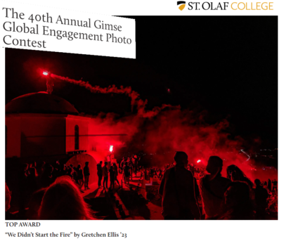 To Saint Olaf, είναι ένα αξιοσέβαστο Κολέγιο που δημιουργήθηκε το 1874 στη Μινεσότα, από Νορβηγούς Λουθηρανούς μετανάστες. Εκτός από τις σπουδές στις ανθρωπιστικές επιστήμες, προσφέρει επίσης διέξοδο στις καλλιτεχνικές ανησυχίες των σπουδαστών του. Μια από αυτές, περιλαμβάνει την φωτογραφία, όπου εδώ και σαράντα χρόνια πραγματοποιείται ο ετήσιος διαγωνισμός Gimse Global Engagement, βραβεύοντας τις καλύτερες λήψεις.