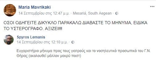 “Ευχαριστήριο μήνυμα προς τους γιατρούς και το νοσηλευτικό προσωπικό του Γ.Ν. Θήρας (ακολουθεί μάλλον μακρύ ποστ)