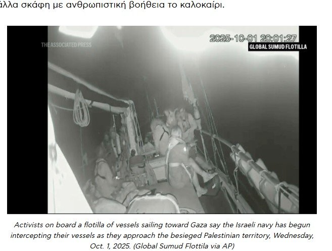 “Σήμερα 2/10/25 και ώρα 6:17 UTC +3, το πλοίο Οξυγόνο του Global Sumud Flotilla, που σκοπό είχε την παράδοση ανθρωπιστικής βοήθειας και στο οποίο επέβαινε η βουλεύτρια της Νέας Αριστεράς Πέτη Πέρκα, προσεγγίστηκε δια θαλάσσης από ένοπλη ομάδα ισραηλινών, η οποία πραγματοποίησε παράνομη κατάληψη του πλοίου σε διεθνή ύδατα κατά παράβαση του Διεθνούς Δικαίου και του Δικαίου της Θάλασσας.