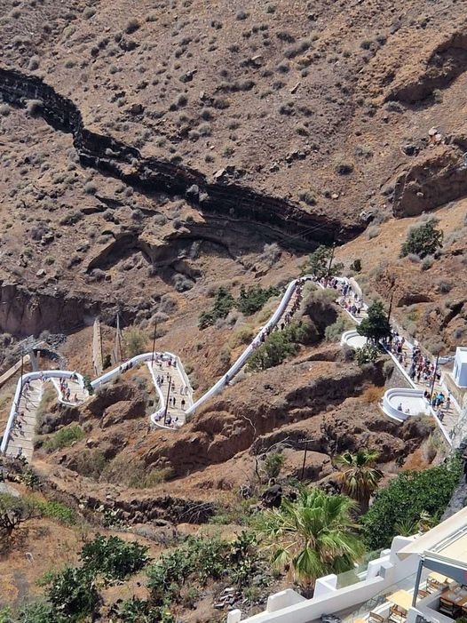 Έτσι, μοιραία ίσως, ήρθε το χτύπημα της 12ης Ιουνίου 2024. Τα Φηρά παραλυμένα. Το Τελεφερίκ, φρεναρισμένο. Οι κάθιδροι τουρίστες αναγκασμένοι να κατεβαίνουν πεζή τα σκαλοπάτια για το γιαλό- Όρμο Φηρών για τα κρουαζιερόπλοια.