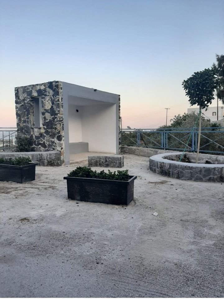 “Ήταν υπόσχεση του Προέδρου μας και όλων των παιδιών και έγινε πράξη. Τα παιδάκια του χωριού μας και οι κάτοικοι αποκτησανε μια στάση για τα ΚΤΕΛ ώστε να αποφεύγουν τη βροχή και το κρύο. Ευχαριστουμε τον Προέδρο μας κ. Καφουρο Αρτέμιο καθώς με δικές του ενέργειες/κινήσεις αλλά και με οικονομική βοήθεια συνέβαλε στο να ολοκληρωθεί το έργο (κτίσιμο πέτρας, αγορά φυτών κ.λ.π). Φυσικά η συνεισφορά των συνεργείων του Δήμου Θήρας και του Αντιδημαρχου μέχρι ένα σημείο της εκτέλεσης ήταν καθοριστική.