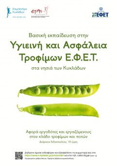 “Το Επιμελητήριο Κυκλάδων ανακοινώνει την έναρξη του νέου κύκλου σεμιναρίων Υγιεινής και Ασφάλειας Τροφίμων, βάσει των όρων και των προϋποθέσεων που θέτει ο Ενιαίος Φορέας Ελέγχου Τροφίμων Ε.Φ.Ε.Τ.