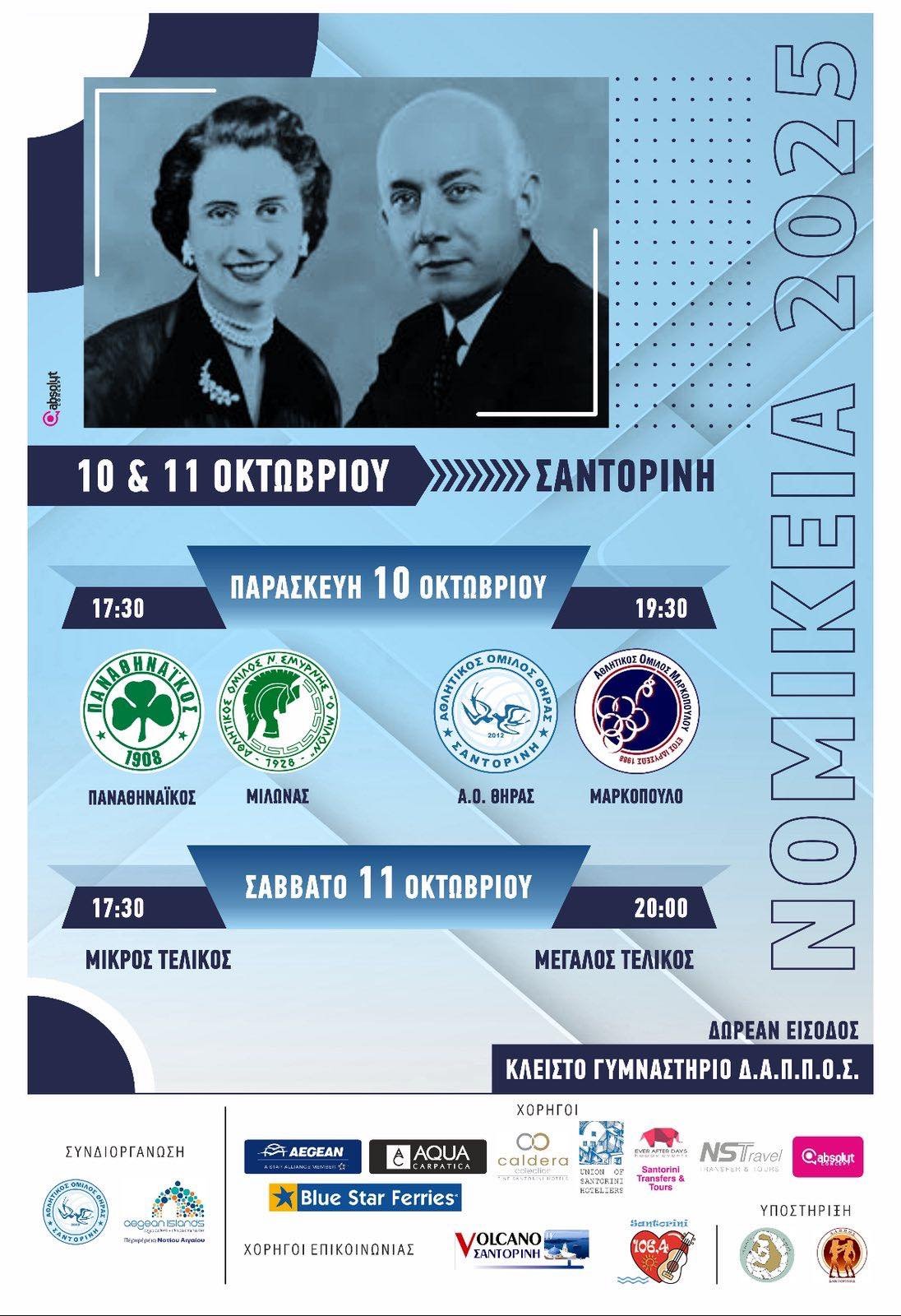 Στις 10 & 11 Οκτωβρίου 2025, το κλειστό γυμναστήριο Δ.Α.Π.Π.Ο.Σ. ανοίγει τις πόρτες του και φιλοξενεί σπουδαίες ομάδες της Volley League: Παναθηναϊκός, Μίλωνας, Μαρκόπουλο και φυσικά ο Α.Ο. Θήρας.