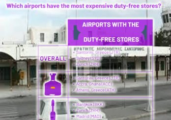 Μεγαλούτσικη δημοσιότητα πήρε η διαπίστωση του ταξιδιωτικού συντάκτη αναλυτή Zach Griff , πως το αεροδρόμιο της Σαντορίνης διαθέτει πολύ ακριβό αλκοόλ και καπνικά προϊόντα. Στη σελίδα του https://thepointsguy.com/guide/duty-free-comparison/ γράφει: Σαντορίνη, Σύδνεϋ, Ζυρίχη και Γκάνα, είναι τα πιο ακριβά μέρη για να αγοράσει κανείς ένα καλό μπουκάλι ουίσκι ή και άλλα προϊόντα.