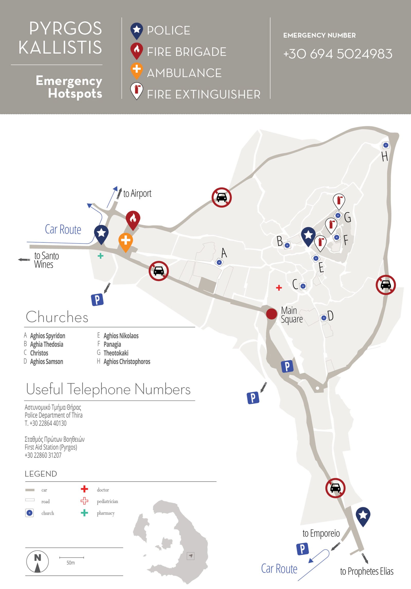 Στην Έξω Πλατεία Πύργου θα βρίσκεται επίσης το Πυροσβεστικό Σώμα καθώς επίσης το ΕΚΑΒ. Μέσα στον οικισμό θα υπάρχουν και επιπλέον εθελοντές με διακριτικά που θα βοηθήσουν στην ομαλή διεξαγωγή της περιφοράς του Επιταφίου καθώς επίσης και για την ασφάλεια των επισκεπτών. Συνημμένο θα βρείτε και τον χάρτη που δημιούργησε ο Νίκος Κορακάκης στα αγγλικά όπου φαίνονται σημαντικά στοιχεία όπως οι χώροι στάθμευσης, οι κυκλοφοριακές ρυθμίσεις, τα σημεία που θα βρίσκεται η Αστυνομία, το ΕΚΑΒ και η Πυροσβεστική καθώς επίσης και πυροσβεστήρες (ευγενική χορηγία του κ. Μάρκου Φύτρου). Σε περίπτωση έκτακτης ανάγκης μπορείτε επίσης να καλέσετε τον αντιδήμαρχο κ. Νίκο Κατσίπη στο τηλέφωνο 6945024983.