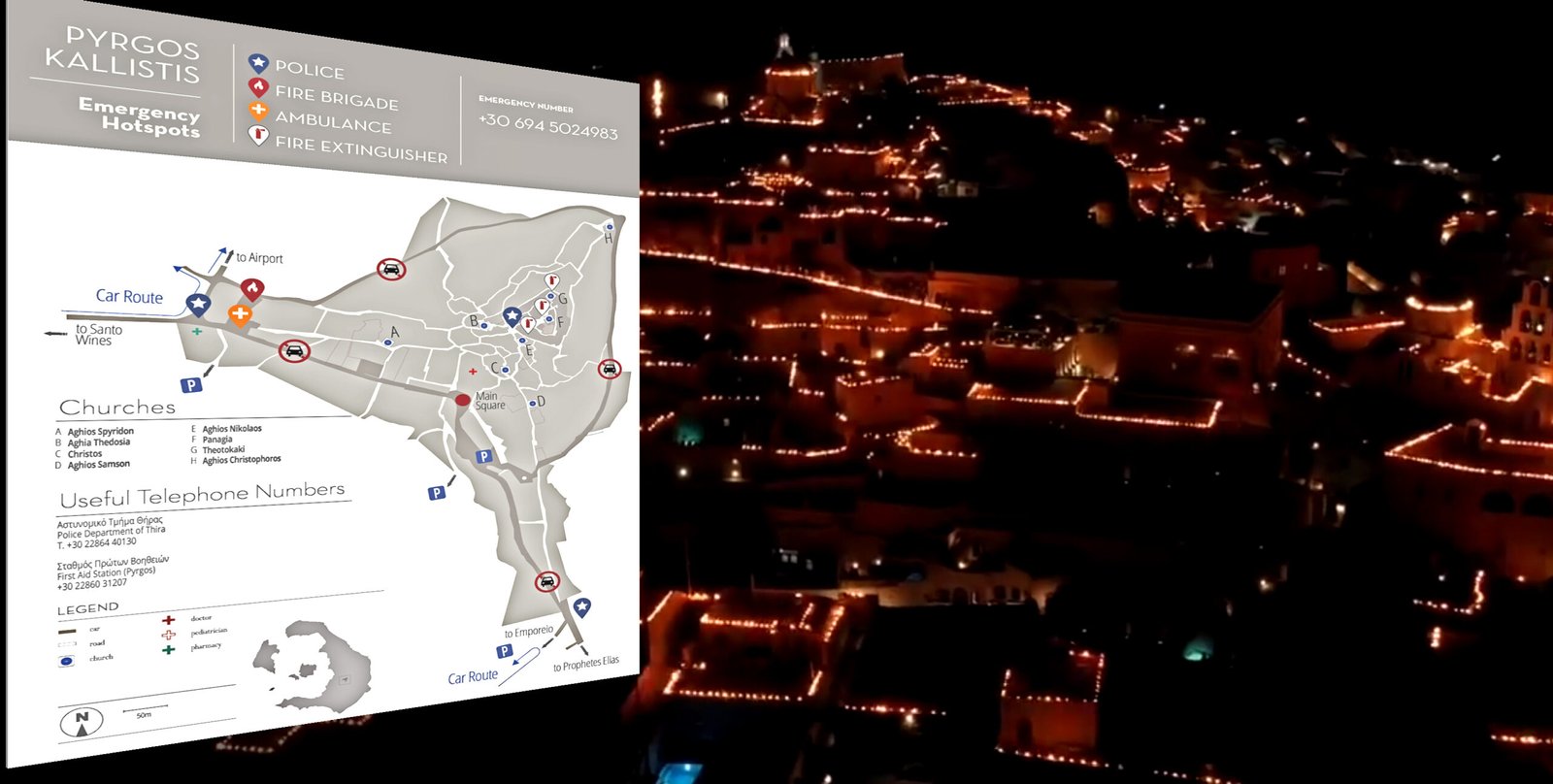 Φέτος θα τηρηθούν κάποια συγκεκριμένα μέτρα ασφαλείας με βασικό σκοπό την προστασία των εθελοντών που ανάβουν τις φωτιές, τους κατοίκους και τους επισκέπτες. Σε συνεννόηση με την τον νέο διοικητή του ΑΤ Θήρας κ. Παναγιώτη Γρίβα έχουν προγραμματιστεί συγκεκριμένες ενέργειες για την απρόσκοπτη προσέλευση των επισκεπτών. Έχουν μονοδρομηθεί συγκεκριμένοι δρόμοι και έχει απαγορευτεί η κυκλοφορία σε κάποιους για την ομαλή προσέλευση στον οικισμό του Πύργου. Μια σημαντική αλλαγή θα είναι η πρόσβαση σε τρεις επιπλέον χώρους στάθμευσης με μεγάλη χωρητικότητα και συγκεκριμένα – ο χώρος στάθμευσης νότια από το φαρμακείο στο ακίνητο του Αγροτικού Συνεταιρισμού Πύργου, στο νέο χώρο στάθμευσης νότια από την πλατεία καθώς επίσης και στο γήπεδο Πύργου. Σε όλους τους χώρους θα υπάρχουν εθελοντές που θα κατευθύνουν τους επισκέπτες.
