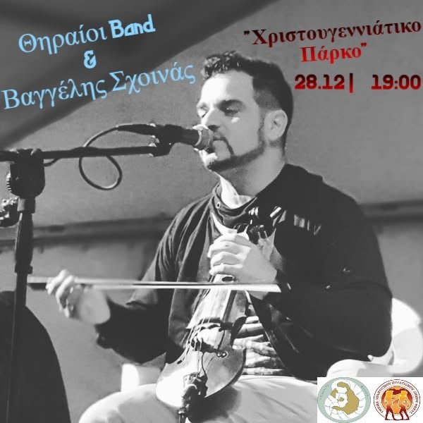 1000014359 “Ο Δήμος Θήρας θα πραγματοποιήσει στα πλαίσια των πολιτιστικών του εκδηλώσεων το Σάββατο 28 Δεκεμβρίου 2024 στις 19:00 στο «Χριστουγεννιάτικο Πάρκο» συναυλία με τους «Θηραίους Band» και τον Βαγγέλη Σχοινά.