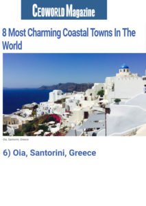 Ανάμεσα στις γοητευτικότερες παραθαλάσσιες-παράκτιες πόλεις, η Kukovic, επιλέγει την Οία, για την οποία γράφει: “ Θα βρείτε την Οία στη Σαντορίνη, το σχεδόν μυθικό ελληνικό νησί γνωστό για τις τέσσερις εκπληκτικές παράκτιες πόλεις. Ωστόσο, η Οία είναι το κόσμημα του νησιού. Η πόλη, η οποία είναι σκαλισμένη ακριβώς πάνω σε μια πλαγιά με θέα στη θάλασσα, είναι απολύτως εκπληκτική. Αυτός είναι ο λόγος για τον οποίο υπήρξε αγαπημένο μέρος για καλλιτέχνες εδώ και χρόνια.