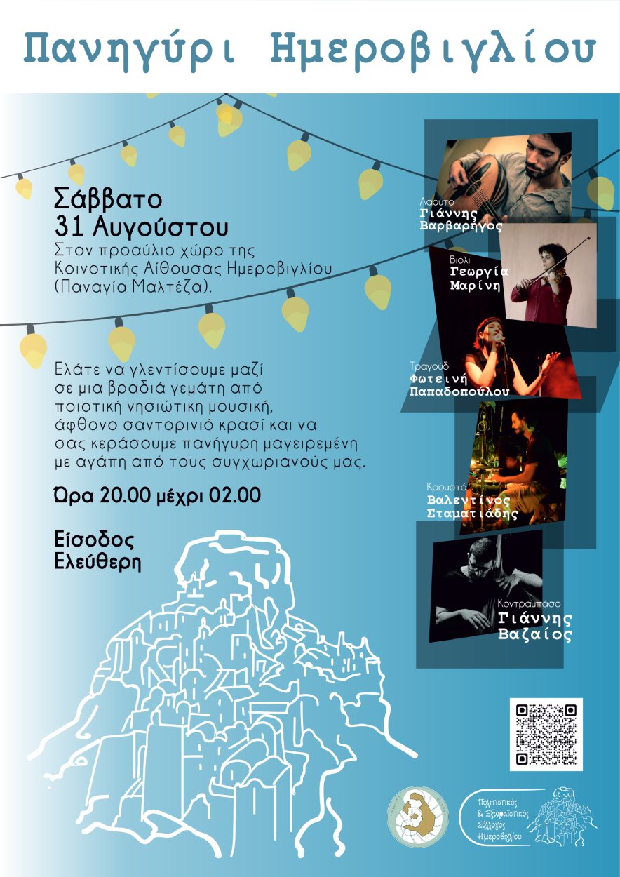 και Εξωραϊστικός Σύλλογος Ημεροβιγλίου, το Σάββατο 31 Αυγούστου στον προαύλιο χώρο
