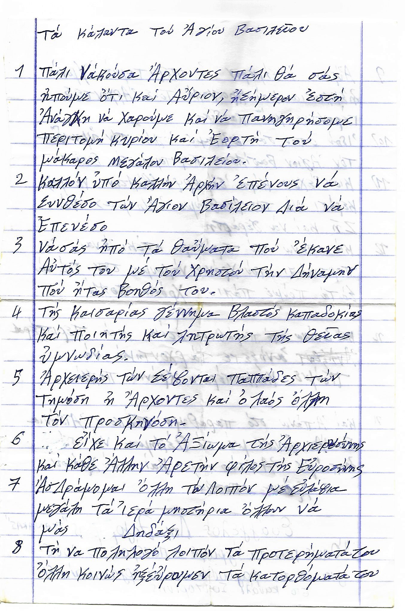 Χειρόγραφο του αείμνηστου Ιεροψάλτη Μεσαριάς Ευάγγελου Ξαγοράρη