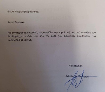 Παραιτήθηκε Ο Αντιδήμαρχος Καθαριότητας Α. Λειβαδάρος (Μπούμπης)
