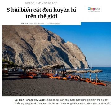 Πέντε μυστηριώδεις και όμορφες παραλίες του πλανήτη, επιλέγει το Βιετναμέζικο περιοδικό . Ανάμεσα σε αυτά και η Περίσσα, της Σαντορίνης. Γράφει ο συντάκτης: