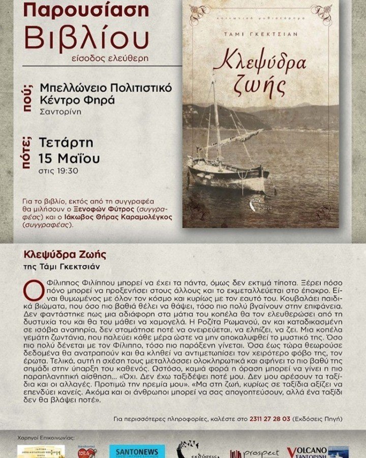 ΠΑΡΟΥΣΙΑΣΗ ΒΙΒΛΙΟΥ ΣΤΟ ΜΠΕΛΛΩΝΕΙΟ: “ΚΛΕΨΥΔΡΑ ΖΩΗΣ”