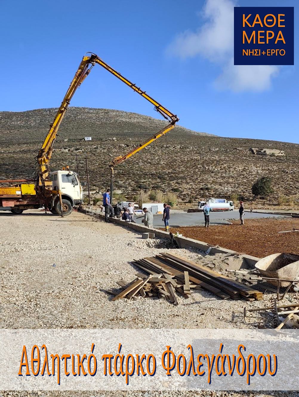 «Παρά τις μεγάλες δυσκολίες που υπάρχουν στην εκτέλεση δημόσιων έργων στα μικρά νησιά μας, οι οποίες πολλές φορές προκαλούν καθυστερήσεις, τα έργα στο Αθλητικό Πάρκο της Φολεγάνδρου βρίσκονται σε πλήρη εξέλιξη και σύντομα τα παιδιά για πρώτη φορά στην ιστορία του νησιού θα έχουν σύγχρονες αθλητικές εγκαταστάσεις για τα πιο δημοφιλή σπορ.