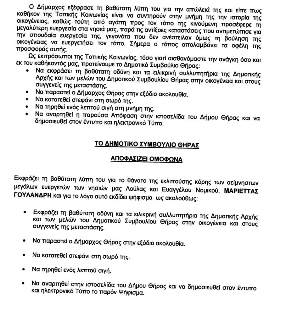 ΟΜΟΦΩΝΟ ΨΗΦΙΣΜΑ ΓΙΑ ΤΗΝ ΕΚΔΗΜΙΑ ΤΗΣ ΜΑΡΙΕΤΑΣ ΓΟΥΛΑΝΔΡΗ-ΝΟΜΙΚΟΥ