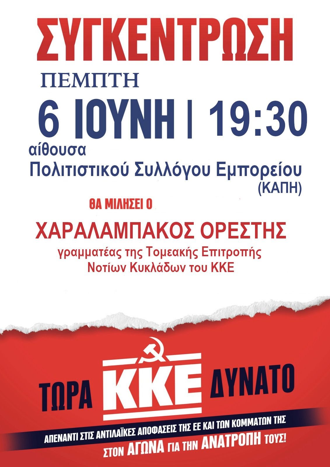 Προεκλογική συγκέντρωση του ΚΚΕ στο Εμπορείο
