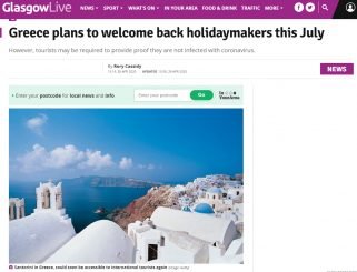 «Η Σαντορίνη στην Ελλάδα, θα μπορεί σύντομα να είναι προσβάσιμη από τους διεθνείς τουρίστες». Αυτό σημειώνει στη –μοναδική- φωτογραφία της, η εφημερίδα.