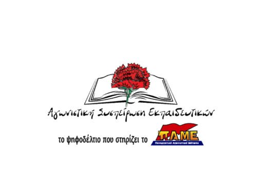 “Η Αγωνιστική Συσπείρωση Εκπαιδευτικών Θήρας Πρωτοβάθμιας και Δευτεροβάθμιας Εκπαίδευσης χαιρετίζει τη σημερινή κινητοποίηση των εργαζομένων του Δήμου Θήρας. Εκφράζουμε τη συμπαράσταση και αλληλεγγύη μας στο δίκαιο αγώνα τους για επέκταση και όχι περικοπή των ΒΑΕ, προσλήψεις μονίμων, επαναφορά 13ου και 14ου μισθού.