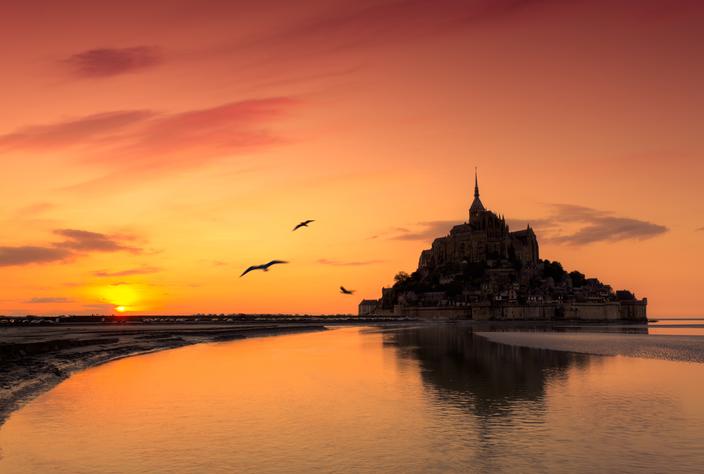 Soir gothico-mystique dans la baie du Mont-Saint-Michel, Normandie (France)