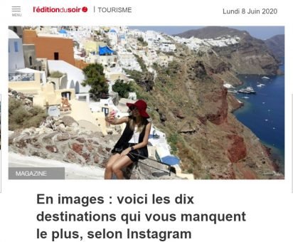 “Λόγω της πανδημίας του κορανοϊού, πολλοί παραθεριστές έπρεπε να ακυρώσουν ή να αναβάλουν τα ταξιδιωτικά τους σχέδια. Αυτή τη στιγμή, ξεφεύγουν μάλλον από τον καναπέ τους. Αναλύοντας τις νοσταλγικές φωτογραφίες τους, το κοινωνικό δίκτυο Instagram αποκάλυψε μια κατάταξη των δέκα προορισμών που οι ταξιδιώτες χάνουν περισσότερο.