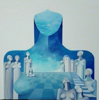 Κυρίαρχη στα έργα του, η επιρροή της μεταφυσικής του Ντε Κίρικο (μεγαλωμένος στο Βόλο, αυτός!) και ταυτόχρονα ένας ύμνος στη γυναίκα. Αυτές τις μέρες, κάνει μια μεγάλη αναδρομική έκθεση, όπου κυριαρχεί η Μεσόγειος. Αλλά περισσότερο η Ελλάδα και σχεδόν απόλυτα η Σαντορίνη.