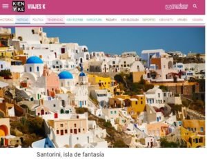 «Η Ελλάδα, είναι μια χώρα που με το μπλε της σημαίας της θα μπορούσε να αντιπροσωπεύσει απόλυτα το έντονο χρώμα των κρυστάλλινων νερών της. […] είναι η μητέρα της δυτικής κουλτούρας, αλλά έχει και ένα υψηλό τουριστικό επίπεδο, όπως στις γοητευτικές Κυκλάδες» , γράφει η Λατινοαμερικάνικη επιθεώρηση Kienyke, κάνοντας ειδική αναφορά και εκτεταμένο φωτορεπορτάζ στη Σαντορίνη, την οποία χαρακτηρίζει «Νησί της φαντασίας».