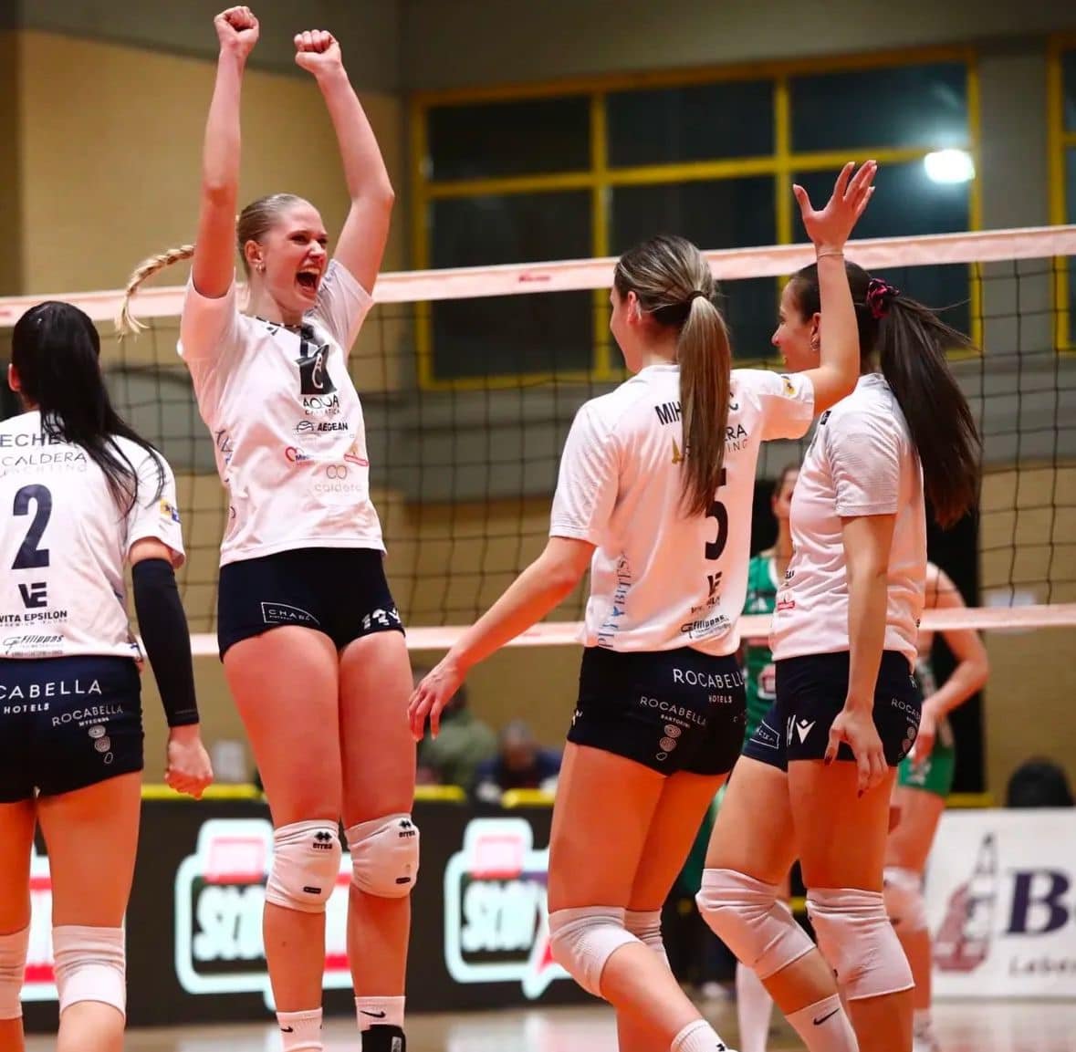 Α.Ο. ΘΗΡΑΣ (Ματέο Φρέσκι): Μπέτσεβα 9 (5/11 επ., 3 άσοι, 1 μπλοκ, 30% υπ. – 10% άριστες), Μιχάλιεβιτς 8 (7/21 επ., 1 μπλοκ), Μόσερ 15 (7/29 επ., 1 άσος, 3 μπλοκ, 62% υπ. – 62% άριστες), Χριστοδούλου 5 (1/3 επ., 2 άσοι, 2 μπλοκ), Δημητριάδη 9 (6/13 επ., 3 μπλοκ), Παπαγεωργίου 6 (5/10 επ., 1 μπλοκ) / Ξηντάρα (λ, 47% υπ. – 6% άριστες), Σαουλίδου (λ), Μπιέρια 2 (2/6επ., 67% υπ., 0% αρ.), Αδαμοπούλου, Αγγελοπούλου”.