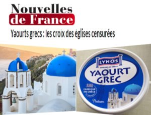 Αλλά το ίδιο αστείο υπάρχει και στην -etat laique, κατά τα άλλα- Γαλλία, όπου το “Παρατηρητήριο για τη Χριστιανοφοβία” (L’Observatoire de la christianophobie), αναφερόμενο σε αντίστοιχο γαλλικό γιαουρτοσκέυμασμα αναφερει με στόμφο στην “Nouvelles des Frances : “Εξαφάνιση από τη συσκευασία γιαουρτιού του σταυρού από τους δύο τρούλους της Ανάστασης της Ελληνικής Ορθόδοξης Εκκλησίας του χωριού της Οίας στη Σαντορίνη, στην Ελλάδα” και συνεχίζει το”Παρατηρητήριο ”  διερωτώμενο: “ (η συγκεκριμένη) Ελληνική Εκκλησία είναι ένα από τις πιο διάσημες στον κόσμο, καθώς έχει αναπαραχθεί σε καρτ-ποστάλ, τουριστικά φυλλάδια και διαφημίσεις. Γιατί έχουν αφαιρεθεί οι δύο σταυροί στη συσκευασία;”.