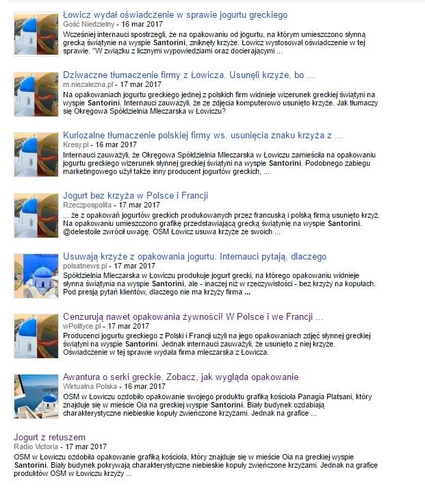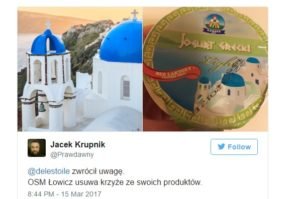 Σε προηγούμενο δημοσίευμα (εδώ), είχαμε αναφερθεί στον “ιερό πόλεμο” που έχει ξεσπάσει στην Πολωνία με αφορμή την κυκλοφορία ενός ψευδεπίγραφα ελληνικού γιαουρτιού που χρησιμοποιεί ως λογότυπο το Ναό της Αναστάσεως στην Οία (σ.Santonews το αρχικό δημοσίευμα μιλούσε για την Παναγία Πλατσανή). Οι αψιμαχίες δια του τύπου, είναι δεκάδες και μάλιστα κάποιες από αυτές, χρησιμοποιούν ως παράδειγμα τη Γαλλία.