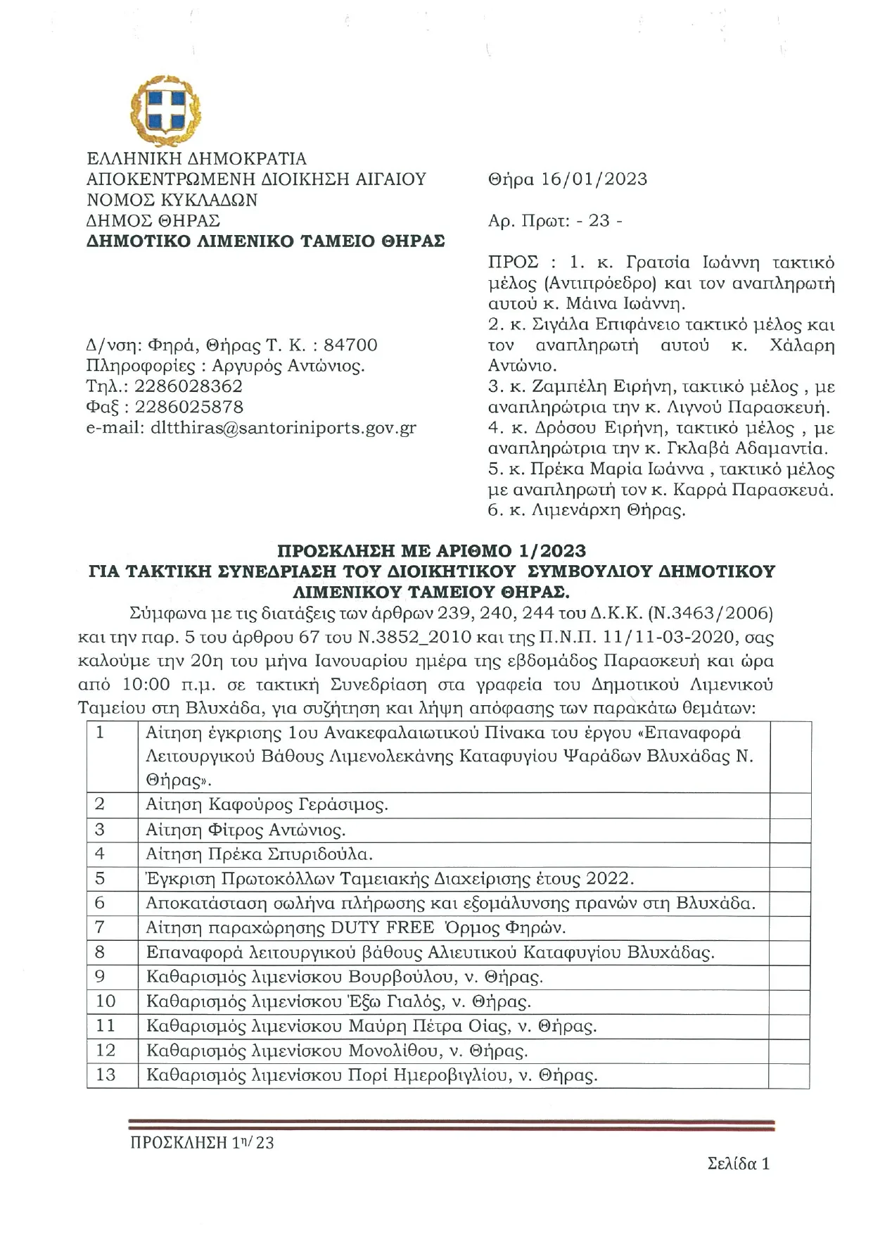 ΣΥΝΕΔΡΙΑΣΗ Δ. ΛΙΜΕΝΙΚΟΥ ΤΑΜΕΙΟΥ ΘΗΡΑΣ