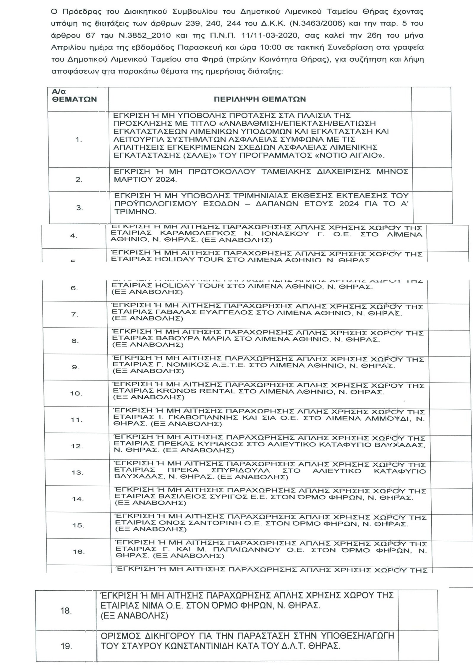 Συνεδρίαση Δημοτικού Λιμενικού Ταμείου Θήρας