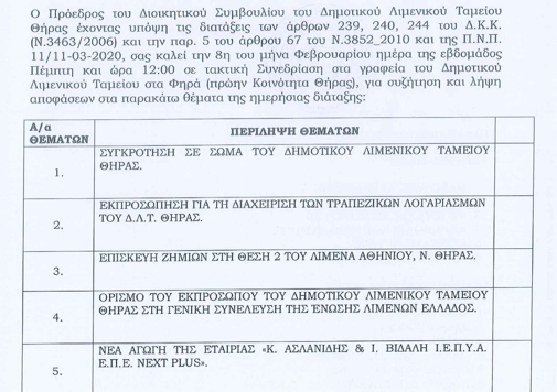 Συνεδρίαση Λιμενικού Ταμείου Θήρας