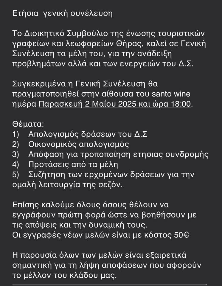 Συνέλευση της Ένωσης τουριστικών γραφείων και λεωφορείων Σαντορίνης