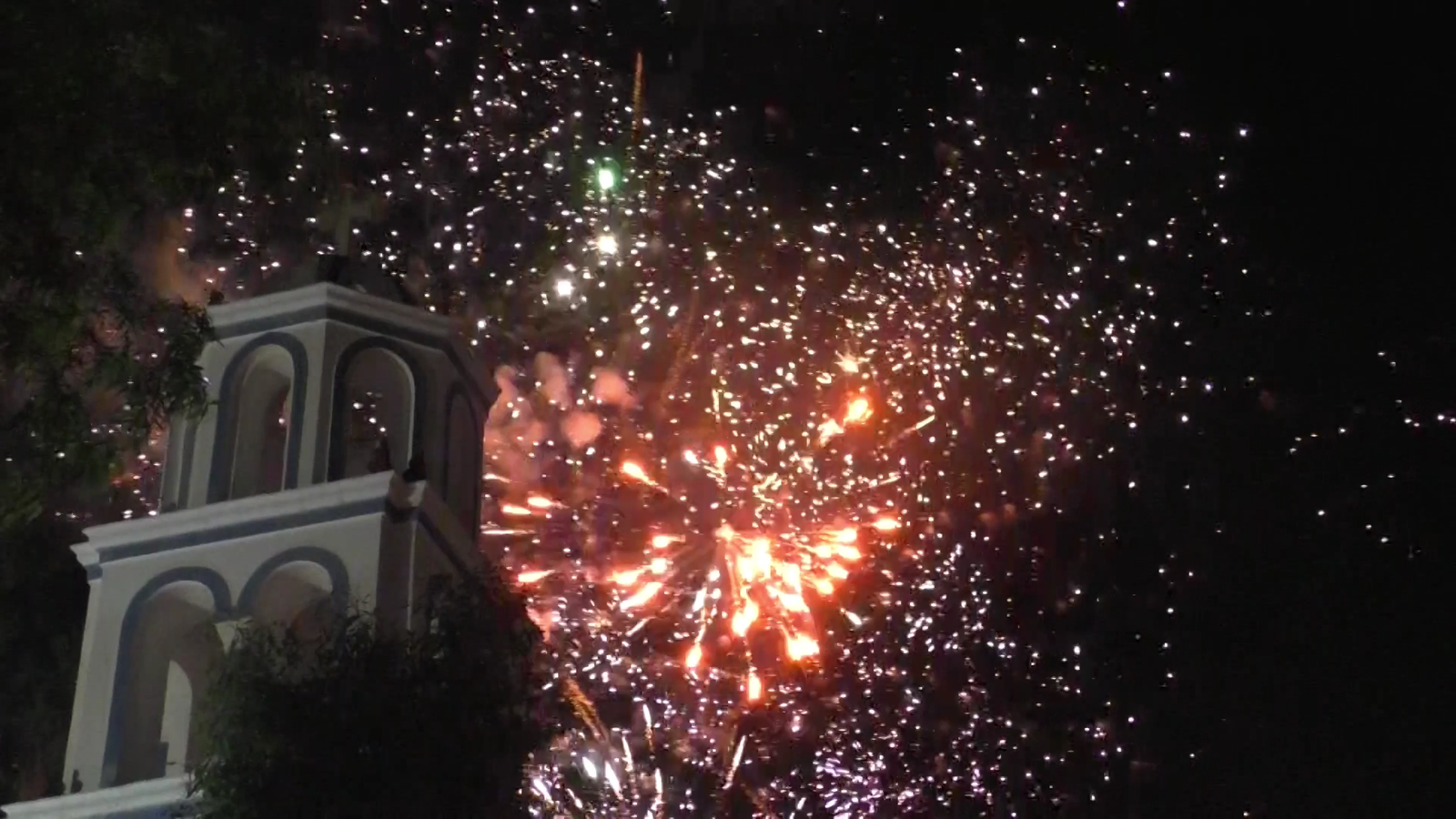 Η στιγμή της αναγγελίας του αναστάσιμου μηνύματος από τον ιερέα, η πλατεία της Μυρτιδιώτισσας, άρχισε να θυμίζει εμπόλεμη ζώνη.