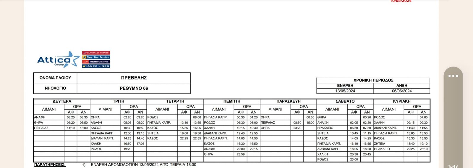 “Από Δευτέρα 13 Μαΐου το πλοίο “ΠΡΕΒΕΛΗ ” έρχεται να αντικαταστήσει τοBlue star Chios.