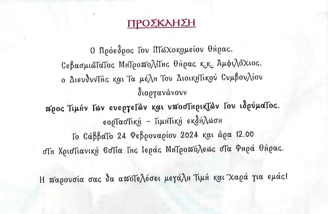 Το “Πτωχοκομείο Θήρας” τιμά τους αρωγούς του