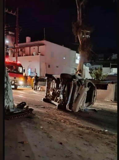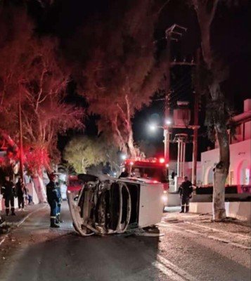 “Σοβαρό τροχαίο ατύχημα στο Εμπορείο Σαντορίνης – Αυτοκίνητο ανατράπηκε κλείνοντας τον δρόμο