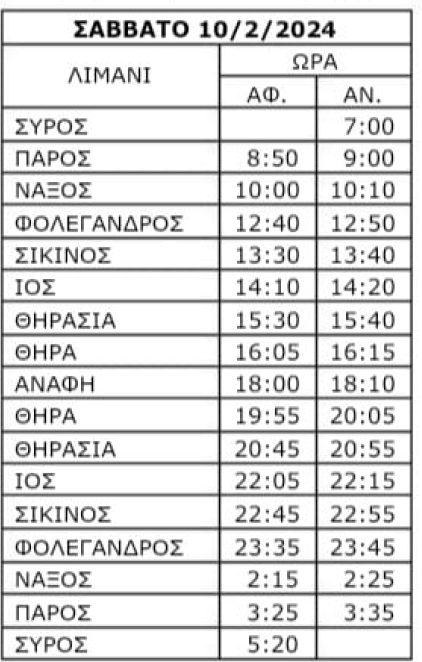Τα δρομολόγια θα διαμορφωθούν σύμφωνα με τον παρακάτω πίνακα: