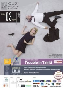 Ο Δημοτικός Αθλητικός Πολιτιστικός Περιβαλλοντικός Οργανισμός Σαντορίνης, ο Δήμος Θήρας και το Πνευματικό Κέντρο Μέγαρο Γκύζη στα πλαίσια των πολιτιστικών τους εκδηλώσεων σας προσκαλούν την Παρασκευή 3 Αυγούστου 2018 στο Μέγαρο Γκύζη στις 21:00 για να παρακολουθήσετε την παράσταση της ομάδας όπερας «The Medium Project» με τίτλο «Trouble in Tahiti».