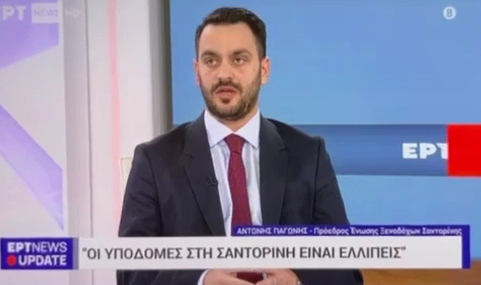 Τη γενική θεώρηση της πρόσφατης σεισμικής κρίσης από πλευρά της τοπικής κοινωνίας και οικονομίας, έκανε ο Πρόεδρος της Ένωσης Ξενοδόχων Σαντορίνης κ. Α. Παγώνης, παραχωρώντας συνέντευξη στην ΕΡΤ. Κομβικό σημείο, κατά τον κ. Παγώνη, είναι η άμεση δημιουργία νέου εμπορικού λιμανιού στη Σαντορίνη.