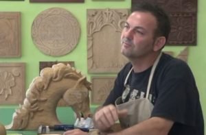 Εδώ και μερικά χρόνια, προερχόμενος από τη Λάρισα και από γενιές ξυλογλυπτών, μυεί δεκάδες ανθρώπους σε μια τέχνη που γεμίζει τις εκκλησίες, κοσμεί τα σπίτια και λαμπρύνεται στα μουσεία.