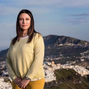 Η Ειρήνη Βαλσαμάκη, είναι γόνος μιας οικογένειας ξακουστών εκπαιδευτικών της Σαντορίνης. Η ίδια, διευθύνει με επιτυχία το Μπελλώνειο Πολιτιστικό Κέντρο. Είναι από τα ιδρυτικά μέλη της Θηραϊκής Πολιτείας και δημιουργός του πολύ επιτυχημένου “Κοινωνικού Φροντιστηρίου” της Σαντορίνης.