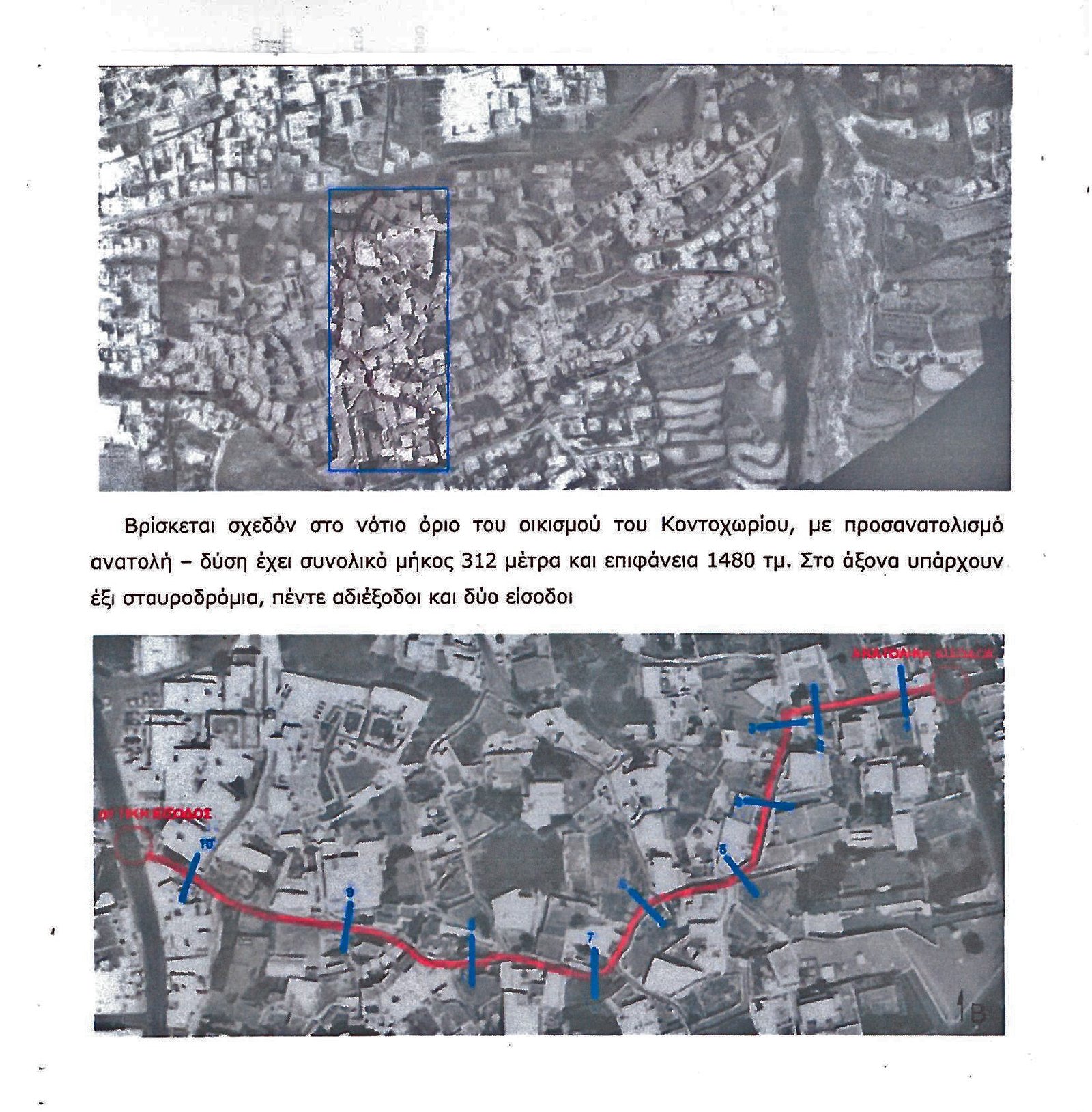 Η βιοκλιματική ανάπλαση πρόκειται να πραγματοποιηθεί στον οικισμό του Κοντοχωρίου, που βρίσκεται στο βορειοανατολικό τμήμα των Φηρών, σε δύο εγκάρσιους άξονες κίνησης που συνδέουν την Αγίου Αθανασίου με την 25η Μαρτίου, όπως φαίνονται στις επισυναπτόμενες αεροφωτογραφίες.