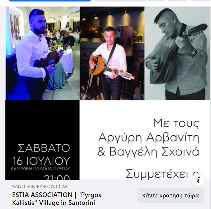 16/7/22 μουσική βραδιά παραδοσιακής μουσικής με τον Αργύρη Αρβανίτη και τον Βαγγέλη Σχοινά. Συμμετέχει ο Αντώνης Ξαγοράρης Ώρα 21:00.